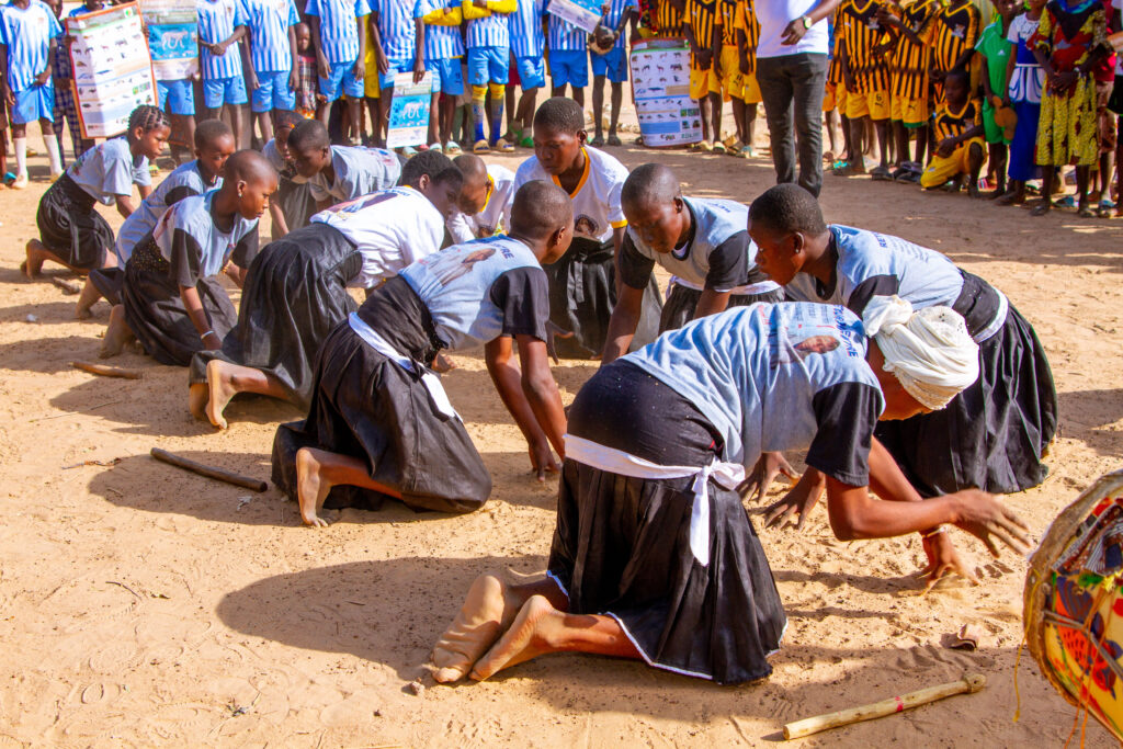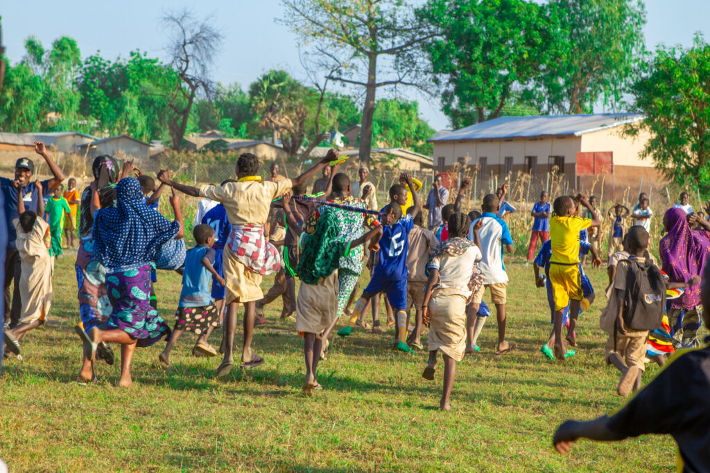 Le lendemain, le voyage s’est poursuivi vers Atabénou, dans la commune de Banikoara. Là-bas, la fête avait commencé avant même que la délégation ne descende des véhicules. Tambours, chants, danses traditionnelles… Les enfants ont accueilli leurs visiteurs comme on accueille des héros.