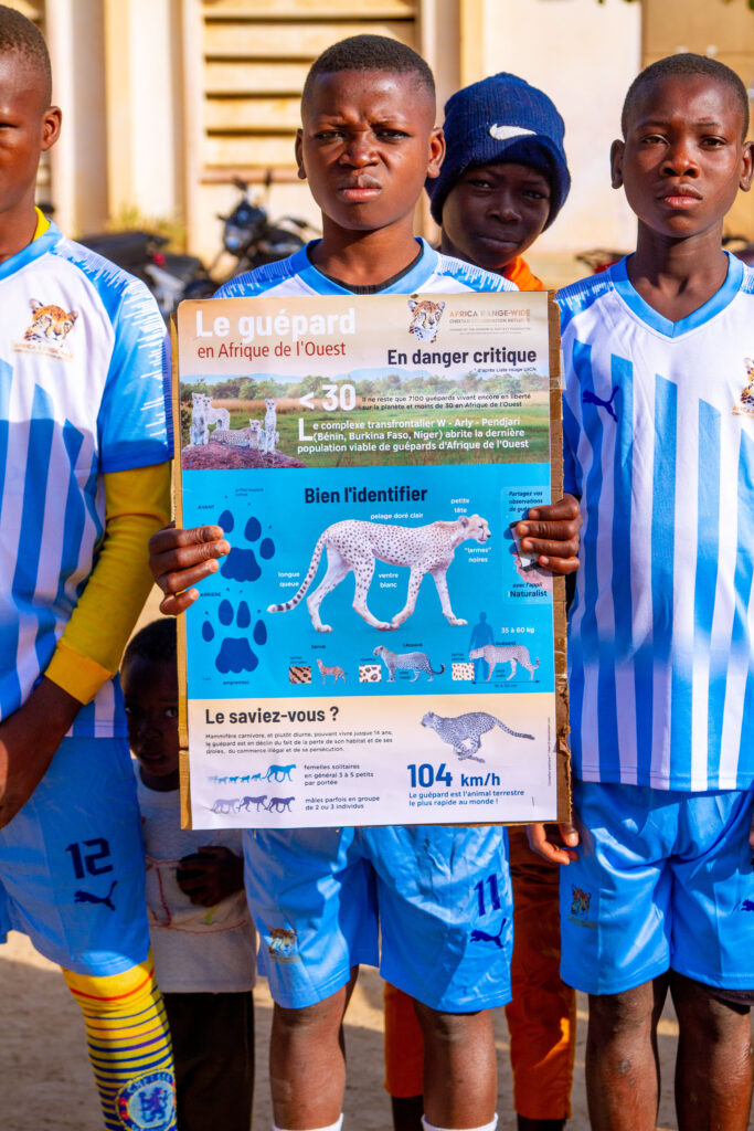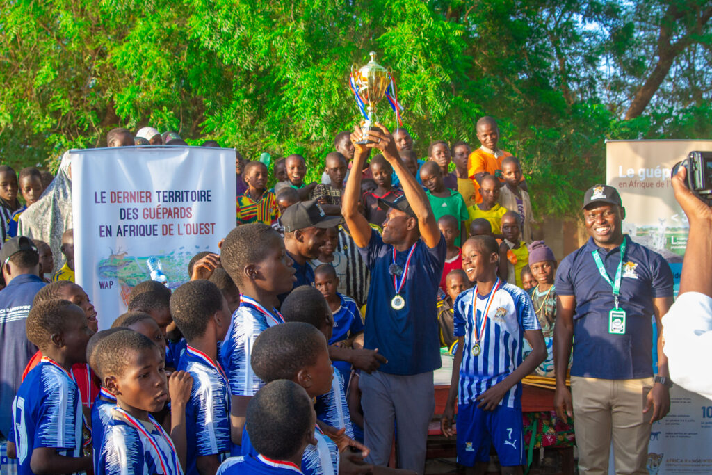 Depuis plusieurs années, la Cheetah Conservation Initiative (CCI), soutenue par la Zoological Society of London et financée par la Fondation Howard G. Buffett, sillonne les communautés du complexe W-Arly-Pendjari pour transmettre un message simple mais vital : le guépard a besoin de nous. Cette fois, l’initiative avait choisi de parler aux enfants par un langage universel : le sport.